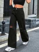 wide leg distress black jeans