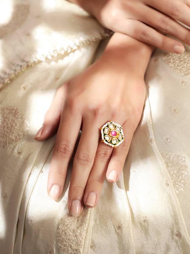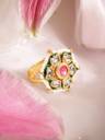 Rubans 22K Gold-Plated Kundan-Stones Flower Design Statement Finger Ring