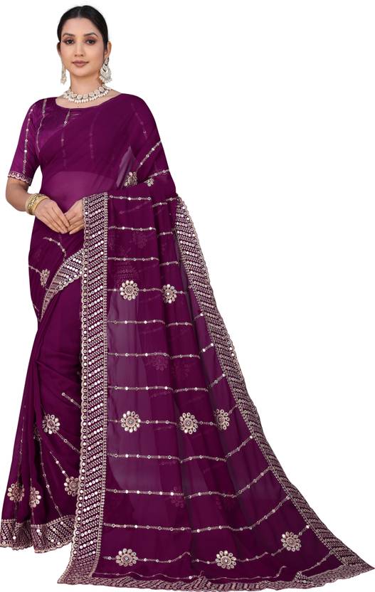 Embroidered, Self Design Bollywood Georgette Saree (Purple)