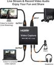 RuhZa HDMI Video Capture with MIC R/L Loop Out USB 2.0 Video Capture Card Phone Game Recording Box Compatible with Live Stream Mic Input HDMI Connector (Black)