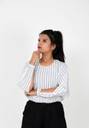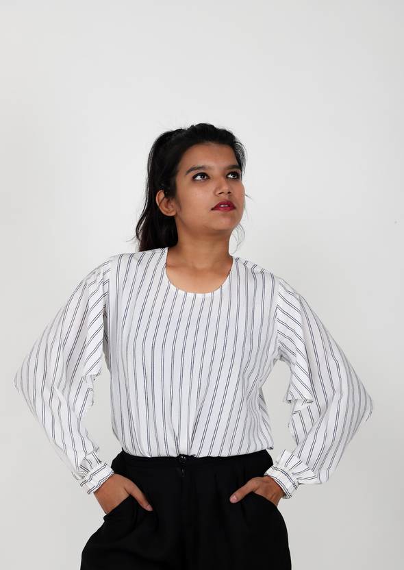 महिलाओं के लिए कैजुअल फुल स्लीव धारीदार सफेद टॉप