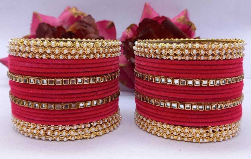 Bridal bangles Velvet , Metal bangles, Traditonal wedding jewelry, Brass Metal and Stone Bridal Bangle Set with Kundan Bangle Chura Beautiful Traditional Design Work Set Of 40 Bangles Set For Women Wedding Jewelry