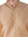 Tradition meets modern minimalism. This silk-blend set offers a sharp, structured silhouette with a lightweight feel that keeps you comfortable through long hours of celebration. The fabric's understated gloss provides a premium finish, making it a versatile choice for everything from office Diwali parties to family dinners. Experience the 'royal' look with none of the fuss.