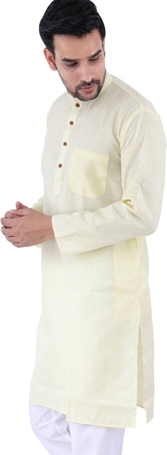 Sadree Men Solid Cotton Blend Asymmetric Kurta (Yellow)
