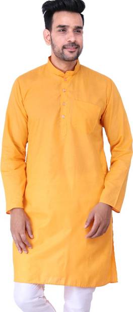 HUZUR as a brand brings you quality and affordability. We take pride in our commitment to maintain quality standards in each piece manufactured by us. Look your ethnic best wearing this kurta set for men from the fashion house of HUZUR .Made from Cotton, this regular-fit kurta pyjama set comprises a full-sleeved kurta to complete your look. Team this outfit with embroidered mojris and rock the party that you attend.