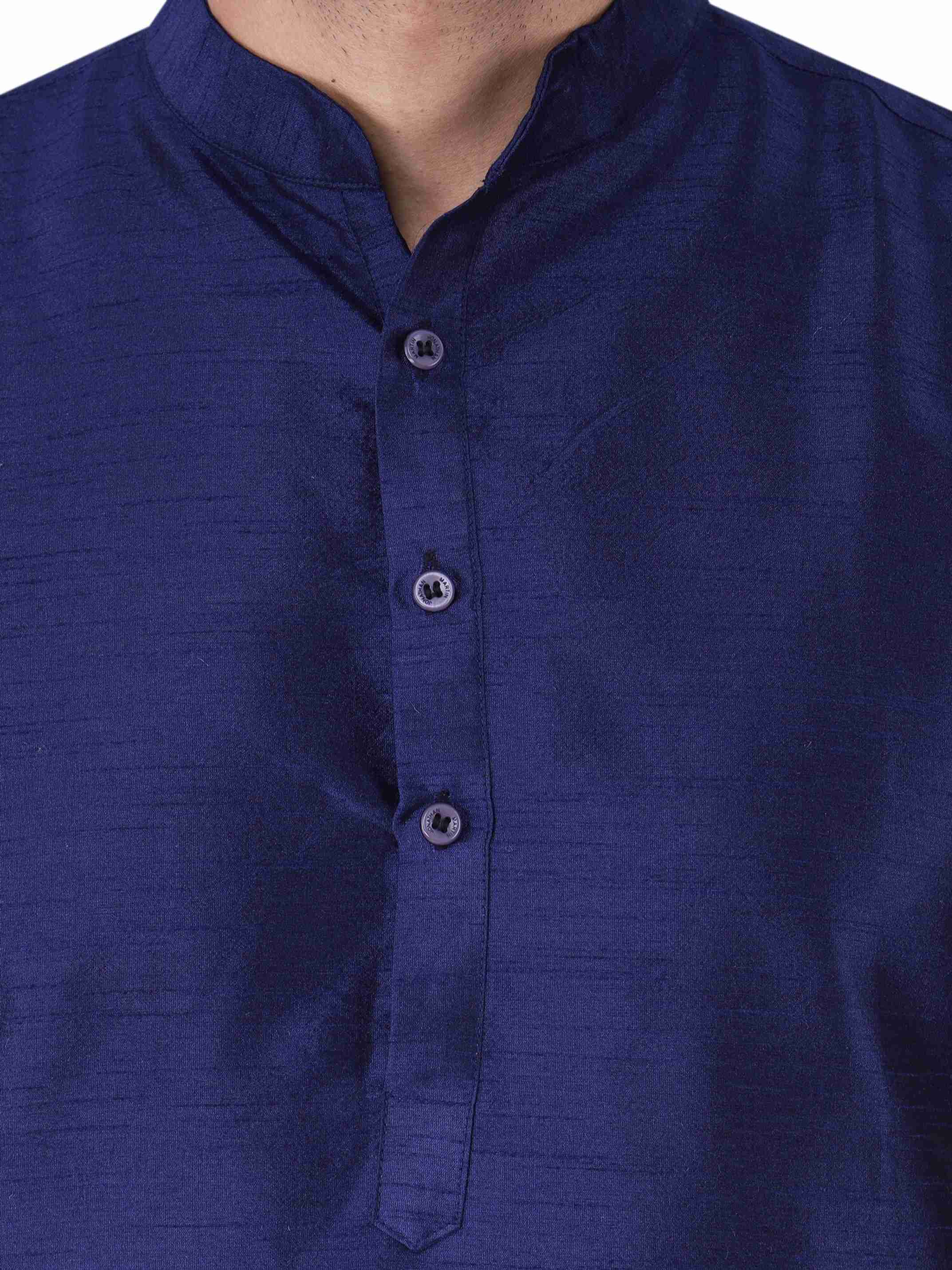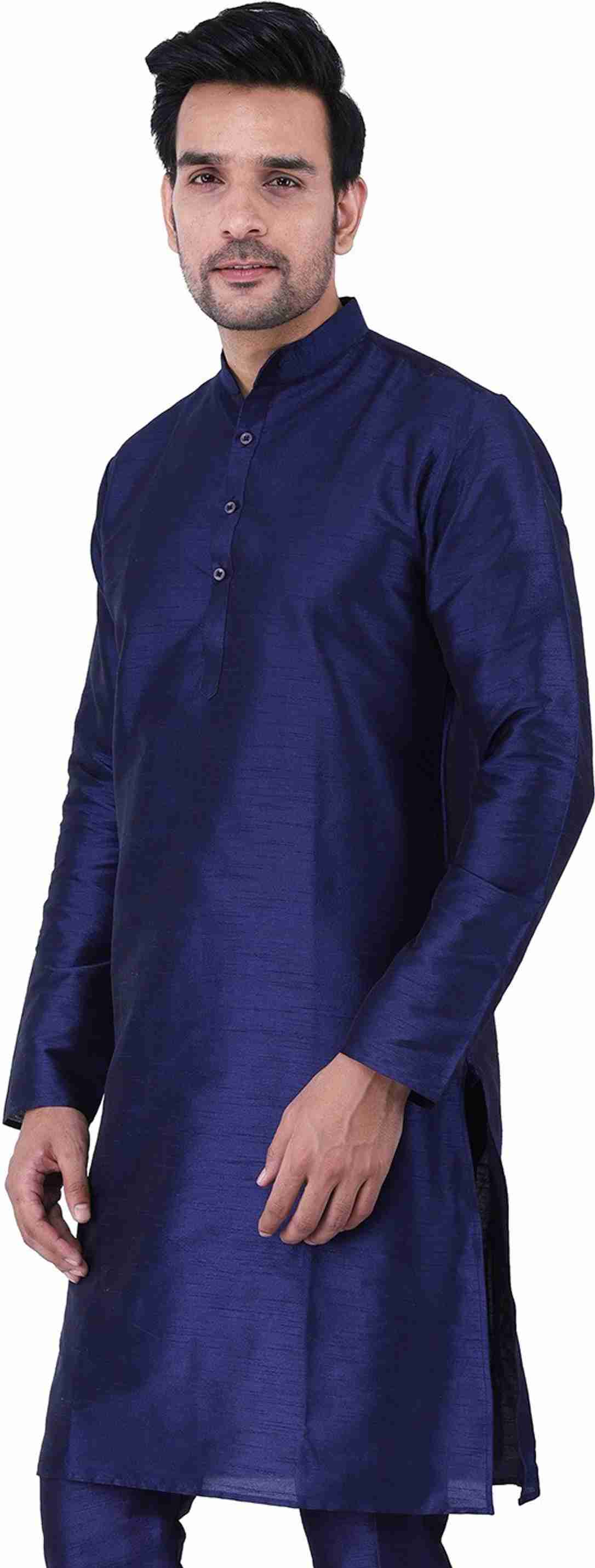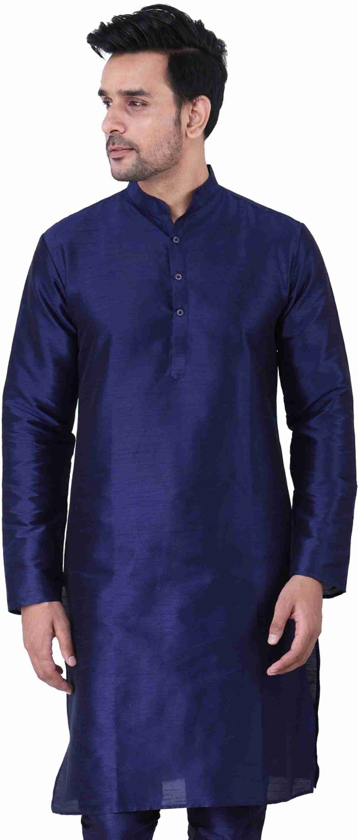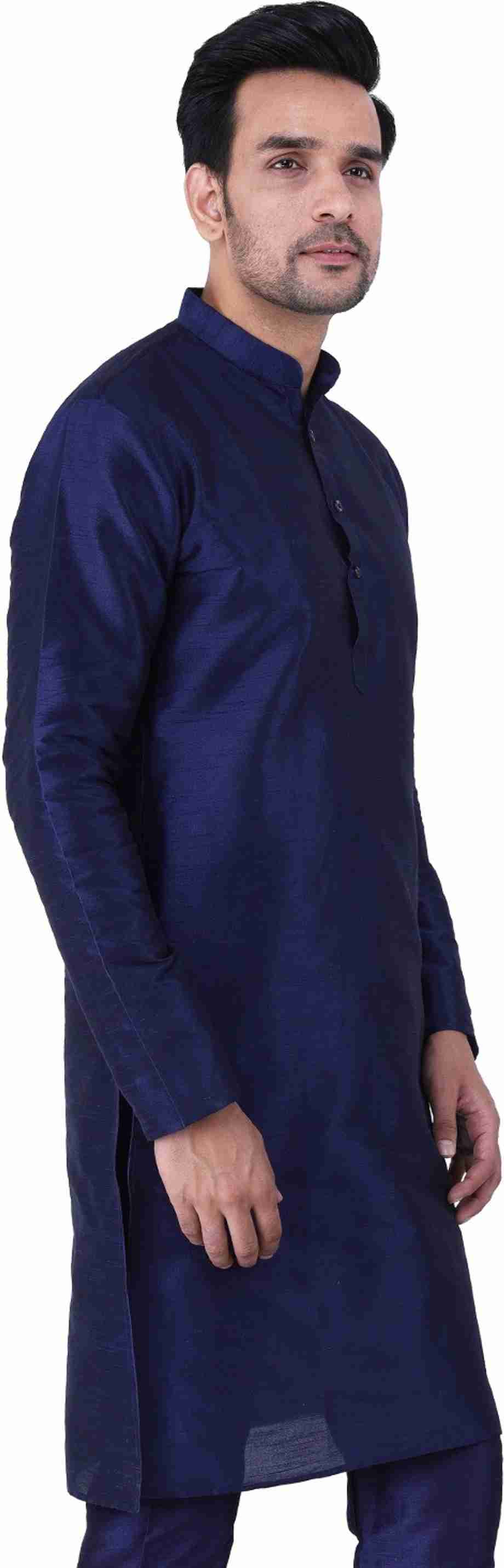 Men Solid Dupion Silk Straight Kurta (Blue)