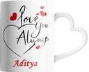 SAHU KRAFT Aditya Love You Always Cute Design Printed, Aditya Coffee Gift To Anyone Special You Love Gift To Anyone Special You Love, Boyfriend, Lover White Heart Handle Ceramic Coffee Mug (330 ml)