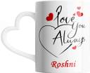 SAHU KRAFT Roshni Love You Always Cute Design Printed, Roshni Coffee Gift To Anyone Special You Love ,Girlfriend, Lover , Valentine day Gift White Heart Handle Ceramic Coffee Mug (330 ml)