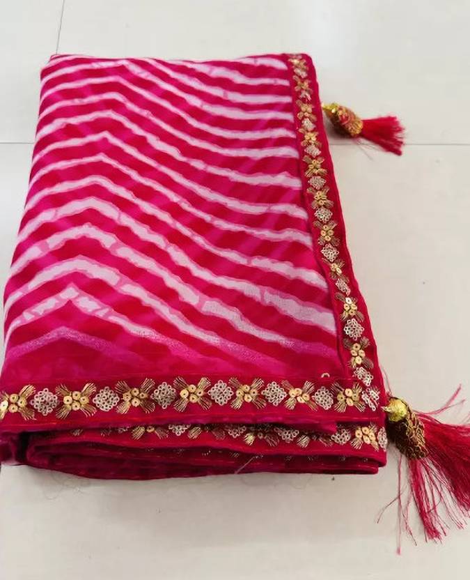 Salco धारीदार बॉलीवुड जोर्जेट साड़ी (लाल)
