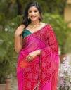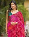 Samah प्रिंटेड बांधनी शिफॉन, जोर्जेट साड़ी (गुलाबी)