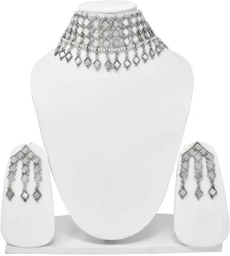 1 पेयर ब्यूटीफुल ईयररिंग विथ मिरर नेकलेस