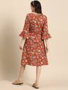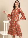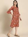 ABOUT THE BRAND Sangria is a ready-to-wear brand that focuses on a global Indian woman. Sangria has a unique signature style with an electric collection of fabrics, colors, and patterns. The brand has a modern take on traditional Indian motifs and designs with a wide range of offerings P R O D U C T D E S C R I P T I O N With the elegant floral print, classy round neck, and highly stylish bell sleeves, this A-line dress is sure to become your go-to outfit. F E A T U R E S Brown and white printed ethnic dress Floral pattern Round neck Three quarter bell sleeves A-line shape Knee length Flared hem