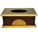 Santarms 1 Compartments Wooden Tissue Paper Box (Brown, golden)