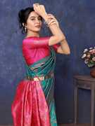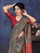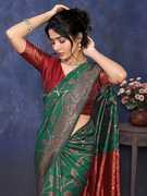 SARETRA MALL एम्बेलिश्ड, सेल्फ डिज़ाइन, बुना हुआ बनारसी जैकर्ड, सिल्क ब्लेंड साड़ी (हरा)