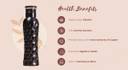 Back in the olden days, rivers and natural sources of water provided essential minerals required by our body. With the advancement of RO and other purifiers, these essential minerals are removed from the water we generally drink. Storing water in copper bottles helps water absorb trace amounts of Copper, which is essential for our body’s proper functioning. Since copper also has the ability to facilitate the absorption of iron, it is effective in treating mineral deficiencies that are common in today's day and age. With Sarveda’s varied range of Copper bottles that are beautifully designed with Yogic and Ancient Indian artwork, you can now choose a bottle that uniquely matches your own style!