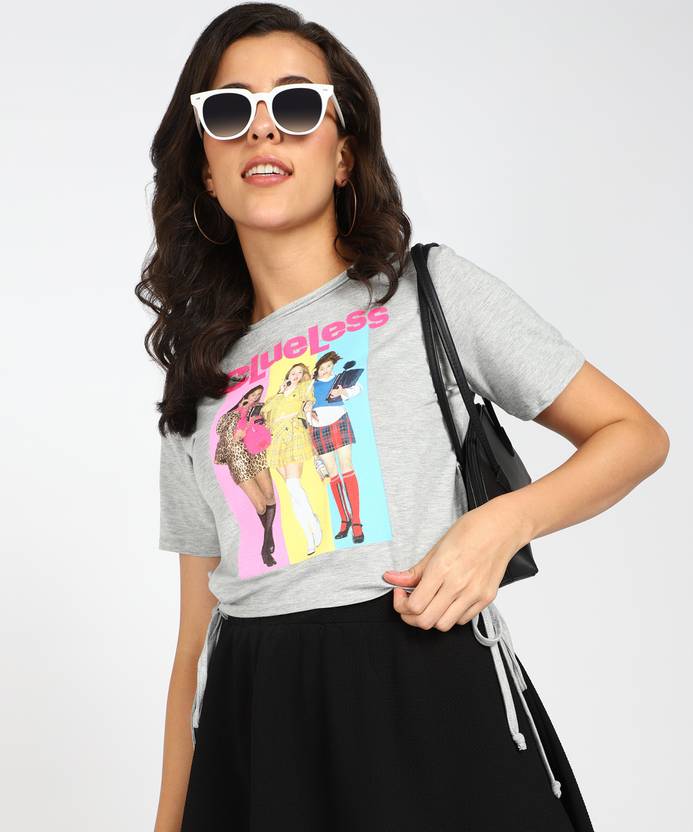 Casual Regular Sleeves Graphic Print Women Grey Top