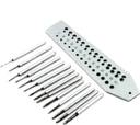 डिस्प्ले में प्रोडक्ट 14-पीस टैप और डाई सेट है जिसमें निम्नलिखित साइज़ शामिल हैं: साइज़ 0.7 - 2.0 mm टैप और स्क्रूप्लेट। सेट का उपयोग छोटे भागों पर आंतरिक और बाहरी धागे दोनों बनाने के लिए किया जा सकता है। सेट का उपयोग थ्रेड वायर के लिए किया जा सकता है, स्क्रू, इयररिंग बैक और घड़ी रिपेयर पार्ट्स पर स्ट्रिप्ड थ्रेड्स को फिर से थ्रेड करने के लिए। स्क्रू-प्लेट (Die) का उपयोग थ्रेडिंग वायर या अपने स्वयं के स्क्रू बनाने के लिए किया जाता है, जबकि व्यक्तिगत नल का उपयोग किया जाता है। कठोर और टेम्पर्ड कार्बन स्टील; सोने, चांदी, पीतल, तांबे, नरम स्टील को काटता है और किनारे को बनाए रखता है। सेट 14 अलग-अलग टैप और एक मैचिंग स्क्रू-प्लेट के साथ आता है। कृपया साफ करें और उपयोग करने से पहले तेल लगाएं। स्कॉर्पियन ग्राहक को बाजार में संभव मूल्य के लिए सबसे अच्छा स्रोत प्रदान करने के लिए प्रतिबद्ध है। आप हमारे प्रोडक्ट्स की क्वालिटी, फंक्शन और उपयोगिता का आनंद लेंगे