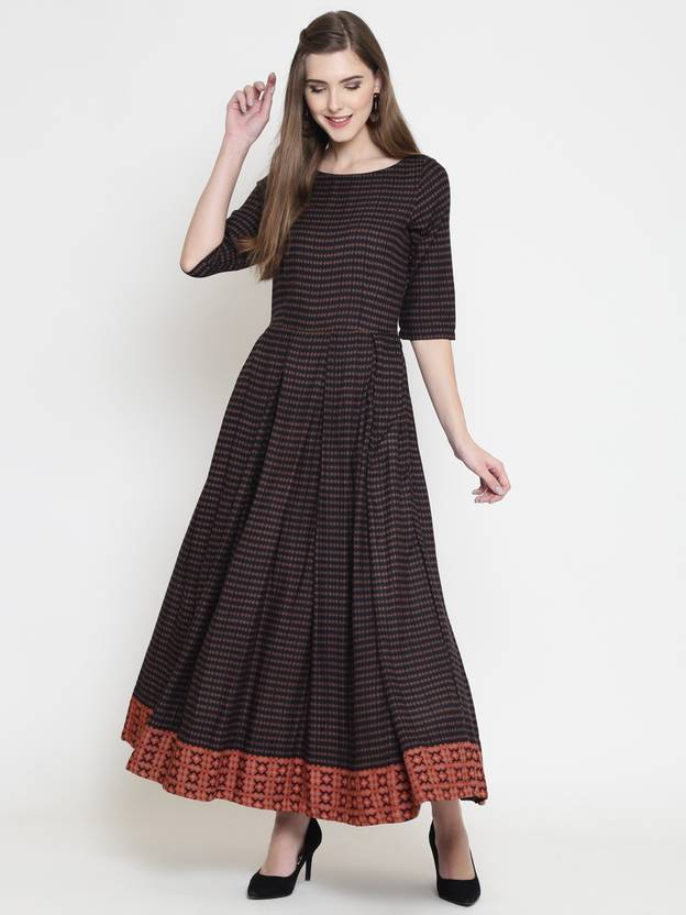 Women Printed Viscose Rayon A-line Kurta (Black)