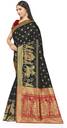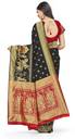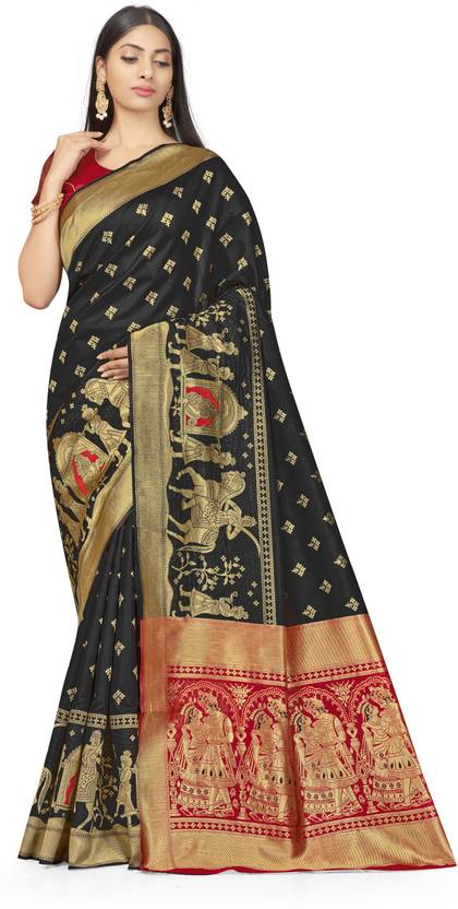 Dashing Heavy Pallu With Fancy Figure Weaving Work 5.50 Mtr Saree Of Black Colour Banarasi Silk Fabric With Red Colour Banarasi Silk Fabric 0.80 Mtr Unstiched Blouse Material By Shadow & SAINING Brand…
