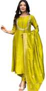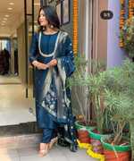 Elevate your style with this exquisite **Pure Roman Silk Kurti Pant Suit with Chanderi Dupatta**. Designed for elegance and comfort, this 3-piece ensemble features: