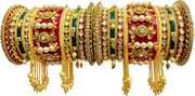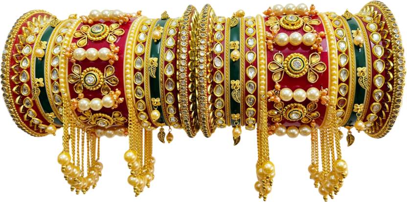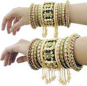 Make a lasting impression with our Kundan Patla Bangles Chuda Set. Elevate your style quotient and celebrate every occasion with grace and sophistication. Order now and add a touch of regal charm to your jewelry collection!""Celebrate the bride's journey with our exquisite bridal bangles chuda set! Handcrafted with love and tradition, these beautiful bangles are adorned with intricate designs and vibrant colors, symbolizing the joyous occasion of marriage. Each set is meticulously crafted to complement the bride's attire and add a touch of elegance to her special day. Elevate your bridal look with our timeless chuda set, a cherished symbol of love and commitment. ???