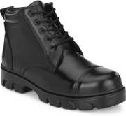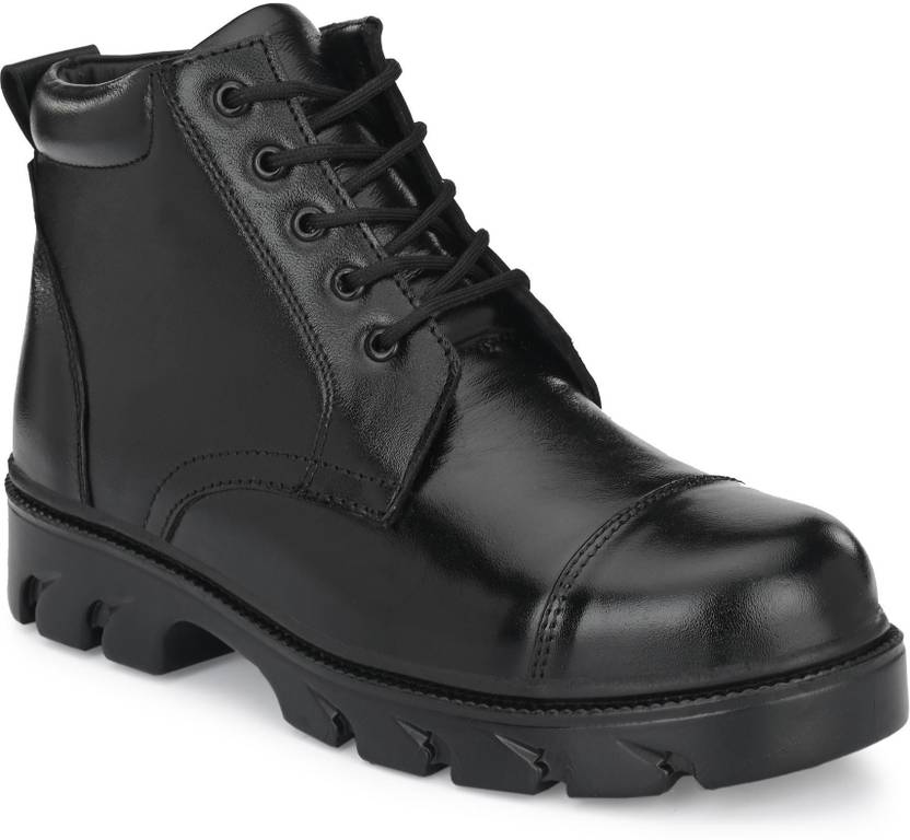 Shoe Day GENUINE LEATHER POLICE SHOES पुरुषों के लिए बूट्स (काला)