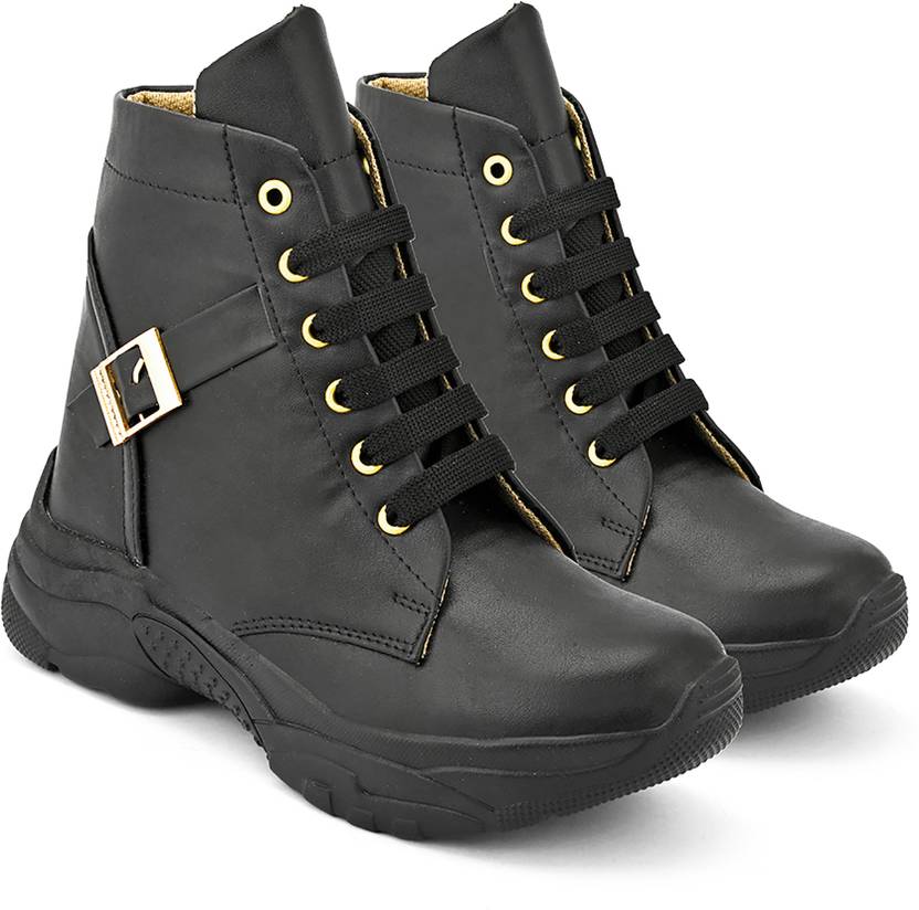 ShoeNstring casual stylish party wear Boots For Women बूट्स (काला)