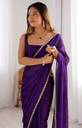 This ready to wear saree comes with ready pleats, a belt with hooks and doris. The belt also contains small elastics. This saree is comfortable for waist sizes ranging from 24 inches to 44 inches. The saree blouse is unstitched. The saree's bottom height (waist to floor) is up to 40 inches. Please do not order if you are very tall or need a saree bottom height greater than 40 inches. Saree Length : 5.5 meter || Blouse Length : 1 meter.... Ocassion - Party Wear || Daily Wear || Festive Wear || Office Wear || Evening Wear.. Product color may slightly vary due to photographic lighting sources on your monitor settings or device setting and lighting used in mode Saree Fabric : Georgette scalloped work lace || Blouse Fabric : Georgette..