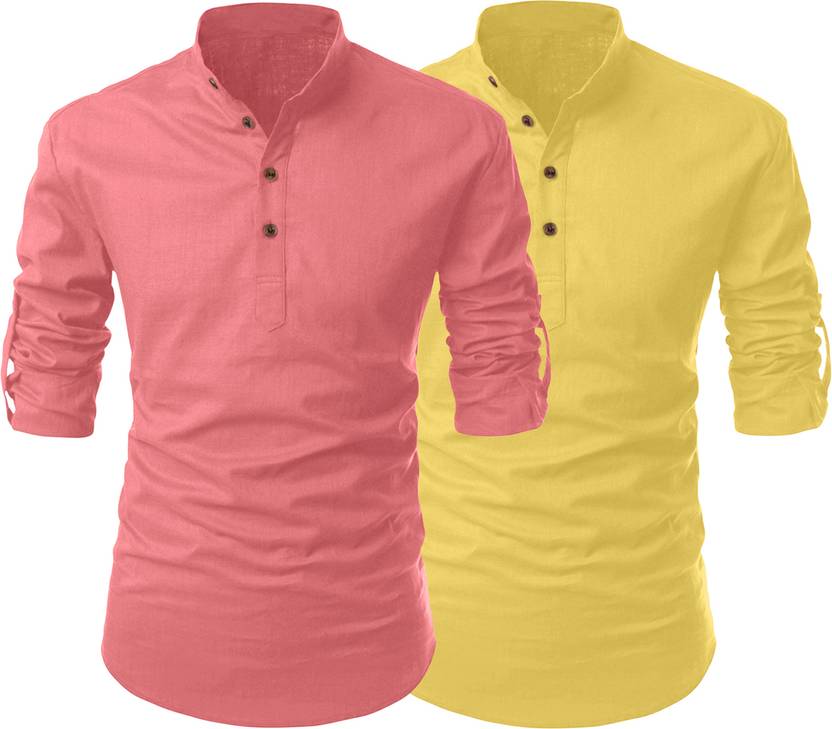SHOPYCLICK Men Solid Straight Kurta (Pink, Yellow)