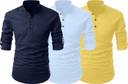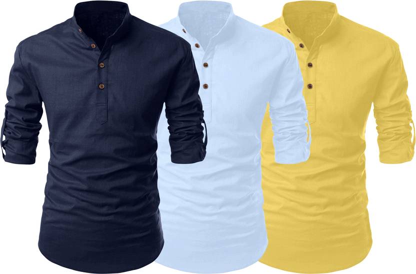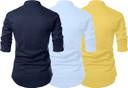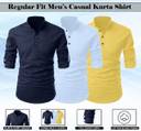 Designed for the urban man, SHOPYCLICK Casual Kurta Shirt is the perfect pick for a casual, yet classy expression. Made of cotton polyester blend, the fabric is soft on the skin to provide all day comfort. It features a curved hemline and offers a relaxing fit that accentuates a neat look. Whatever the occasion, exude confidence in style with this fashionable shirt. Soft and comfortable to wear, the fabric is breathable and easy on the skin- providing a cool effect to keep you relaxed throughout the day. The Kurta shirt is styled with a solid tone, long sleeves and a straight collar. Checkered prints lined along the button placket, collar and cuffs create a distinctive casual appeal. The contrasting print on the inner cuffs allow you to switch from a professional look to a relaxed casual appearance when folded. This casual modern fit shirt has a curved hemline with stitched borders. It not only ensures a durability to the seams but also accentuates the stylish and casual look of the Kurta shirt. You can go casual and keep it outside or go formal and tuck it in. The casual Kurta shirt from SHOPYCLICK is tailored to offer a regular and smart fit. These shirts are stitched in our own factory with care. The fit is very modern with very durable threads used for stitching. All Kurta shirts are cut from machines which bring to you the perfect fit and make sure each shirt is the same. [ PACK OF : 3 KURTA SHIRT ]