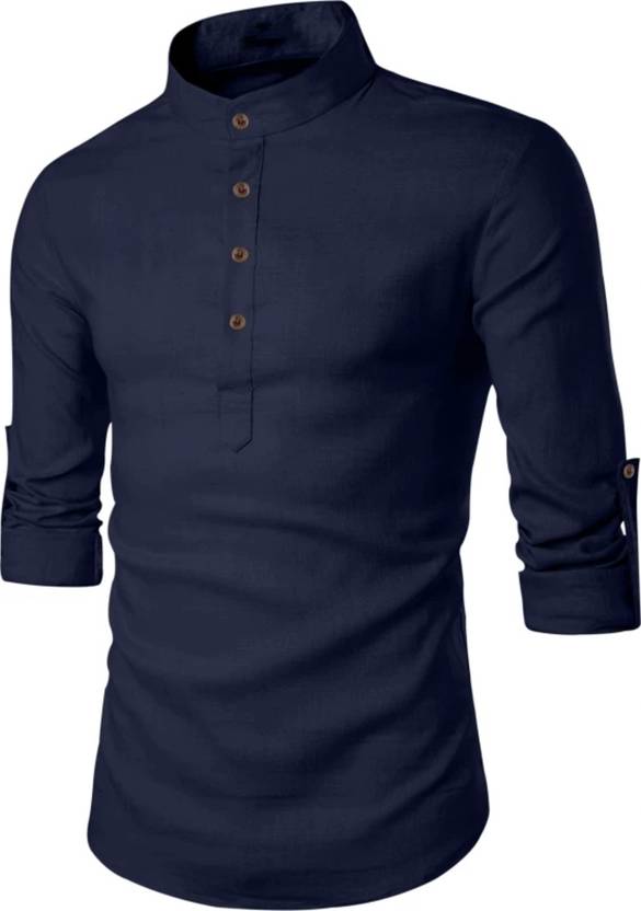 S KUADA Men Solid Straight Kurta (Dark Blue)
