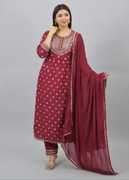 Women Viscose Rayon Kurti Pant Dupatta Set