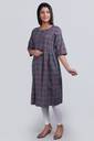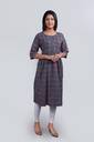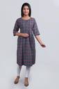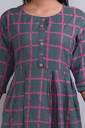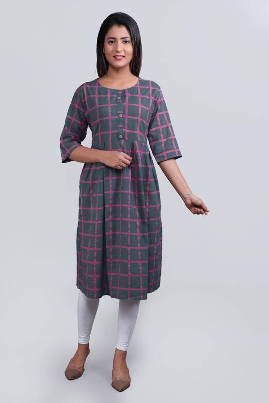 Women Checkered Cotton Blend A-line Kurta (Pink, Grey)