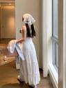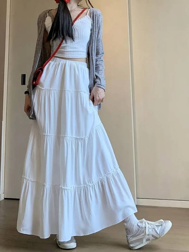 skart महिलाओं के लिए फ्लोरल प्रिंट फ्लेयर्ड सफेद स्कर्ट