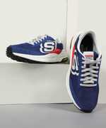 Sporty style and durable comfort deliver in Skechers Global Jogger - Poster. This sporty lace-up features a synthetic and mesh upper with a Skechers Air-Cooled Memory Foam insole and durable Goodyear Performance Outsole