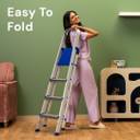 | Other Body & Design Features | - Top Quality Material:- Pure Aluminum and Polypropylene are used to build the Ladder which is Best for home, It is easy to lift as it has low weight and the material is solid which will allow you to use it for long time., >> Load Bearing Capacity:- Skywave Luxury can hold up to 250-300 kgs which is much more than all other brands and aluminum has been used to make this stairs., >> Special Side Guards:- Protects your Legs from scratches and your clothes from tearing., >> Anti Skid-Step Design:- This Skywave Luxury Ladder has an anti-skid step design that will prevent you from slipping and falling., >> Step Width:- This Ladder has a step width of 4 inches which is more than other brands. Other brands have a step width of 3 inches or less.