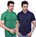 SMAN Pack of 2 Men Solid Polo Neck Cotton Blend Dark Blue, Green T-Shirt