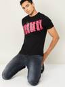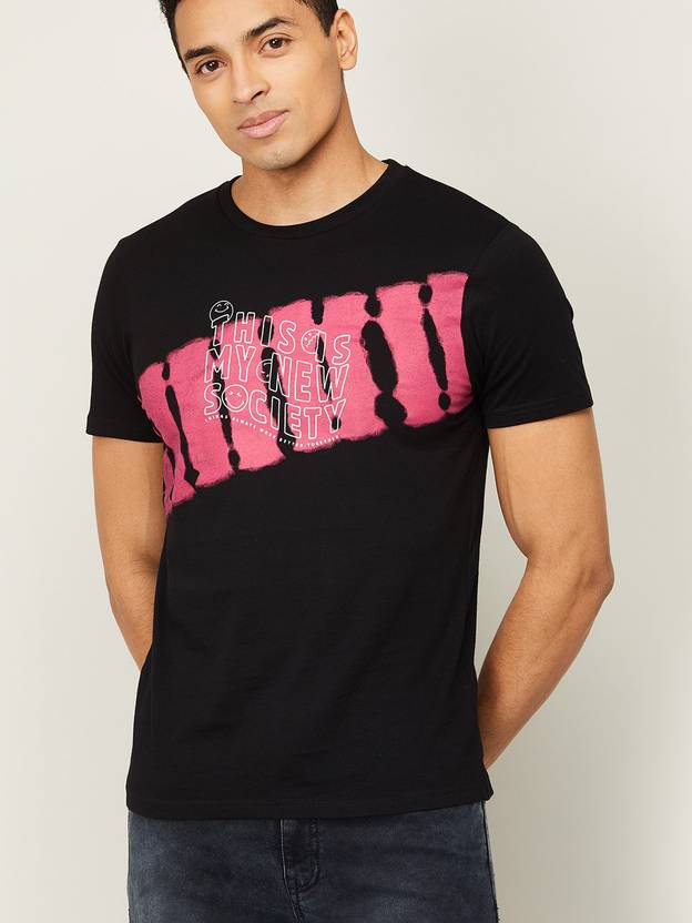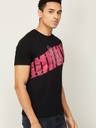 Men Printed Round Neck Pure Cotton Black T-Shirt