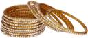 Golden Glass Bangle Set Of Twelve Decorative With Beads & Stones (With Safety Cum Gift Box)