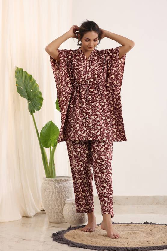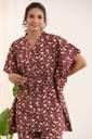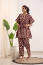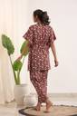 Women Night Suit Set Maroon Floral Print