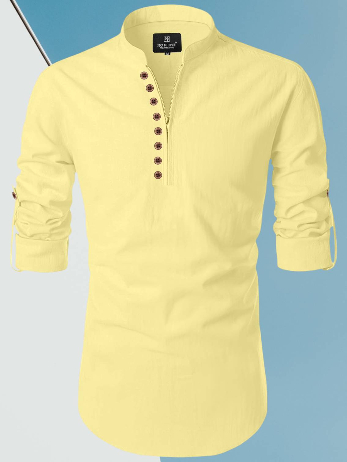 सोपानी पुरुषों के लिए सॉलिड स्ट्रेट कुर्ता (पीला)