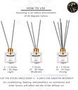Fill your living spaces with this pleasant aroma. Lasts upto 1 month., This duration may vary depending on room temperature or humidity conditions., Remove the cap of the bottle and plastic plug and keep it in up right position., Insert the reed sticks into the bottle. Increase or decrease the reed stick quantity to adjust fragrance., Turn the sticks upside down for greater intensity.