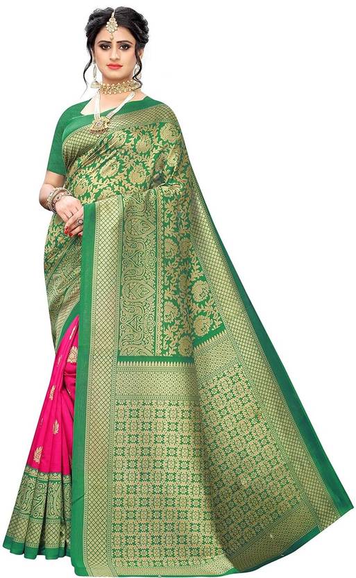 Polka Print Arani Pattu Art Silk Saree (Green)