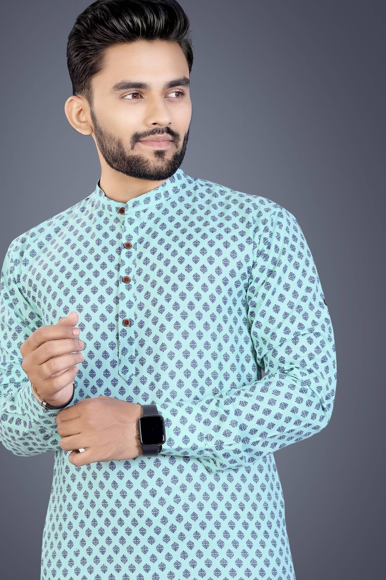 स्पोक पुरुषों के लिए प्रिंटेड स्ट्रेट कुर्ता (हल्का हरा)