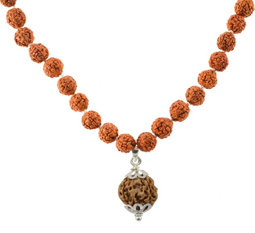 For Dhanu & Meen Rashi 5Mukhi Rudraksha With 5Mukhi 108 Bead Mala Beads Silver Plated Wood Chain