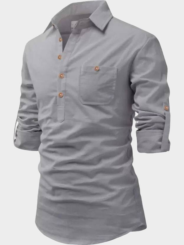 Springberry Men Solid Pure Cotton Straight Kurta (Grey)