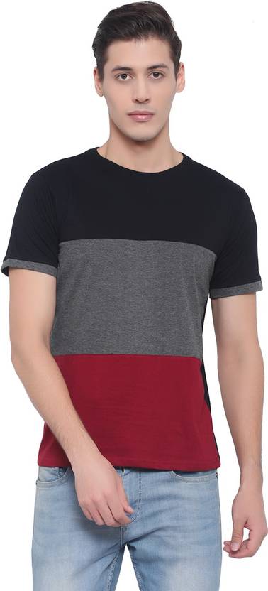 पुरुषों के लिए कलर ब्लॉक गोल गला काला टी-शर्ट