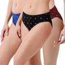 This image showcases a set of four cotton underwear in vibrant colors—blue, red, and black—featuring a floral print design. The comfortable fit and elastic waistband make them ideal for everyday wear. These breathable and stylish briefs provide both fashion and functionality.