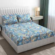 STEDO Cotton Double Fitted (Elastic) 250 TC Floral Bedsheet (Pack of 1, Soft Breathable & Wrinkle Free Bedsheets)