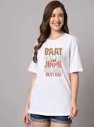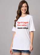 A casual women's t-shirt typically features a relaxed fit and comfortable fabric, such as cotton or a cotton blend. These shirts often have short sleeves, though some may have long sleeves or be sleeveless depending on the style. They come in various necklines, including crew neck, V-neck, scoop neck, or even off-the-shoulder designs. Casual t-shirts can be plain or adorned with graphics, logos, or prints, reflecting personal style or current trends. They are versatile and can be paired with jeans, shorts, skirts, or layered under jackets or sweaters for a laid-back and effortless look.